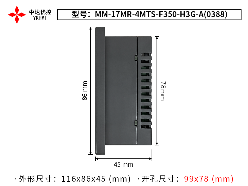 - 開孔尺寸: 96mm * 77mm